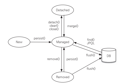 영속 : 영속성 컨텍스트에 저장되고 관리되는 상태