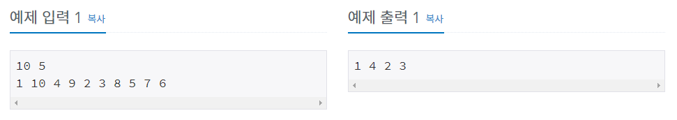 - 첫째 줄에 N과 X가 주어진다. (1 ≤ N, X ≤ 10,000)