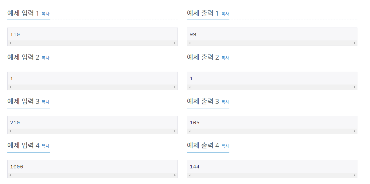 - 첫째 줄에 1보다 크거나 같고, N보다 작거나 같은 한수의 개수를 출력한다.