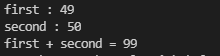 위의 first 와 second를 더하면 1+2 일텐데 답은 99가 나온다.